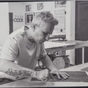 El recorrido por la exposición muestra el tránsito desde la imagen concebida en un boceto hasta llegar a la imagen impresa o estampa. Casi la totalidad de las estampas expuestas son linografías, una de las técnica en relieve del grabado que utiliza planchas de linóleo como soporte. Se talla la superficie del linóleo con herramientas como gubias y cuchillas, dejando en relieve las áreas que se desean imprimir. La tinta se aplica únicamente sobre estas zonas elevadas mediante un rodillo de caucho y se transfiere al papel por presión mediante una prensa vertical o un tórculo. Esta técnica permite contrastes muy definidos, líneas precisas y grandes áreas de color sólido, y es especialmente apreciada por su versatilidad: se puede trabajar desde composiciones geométricas hasta trazos orgánicos y expresivos.